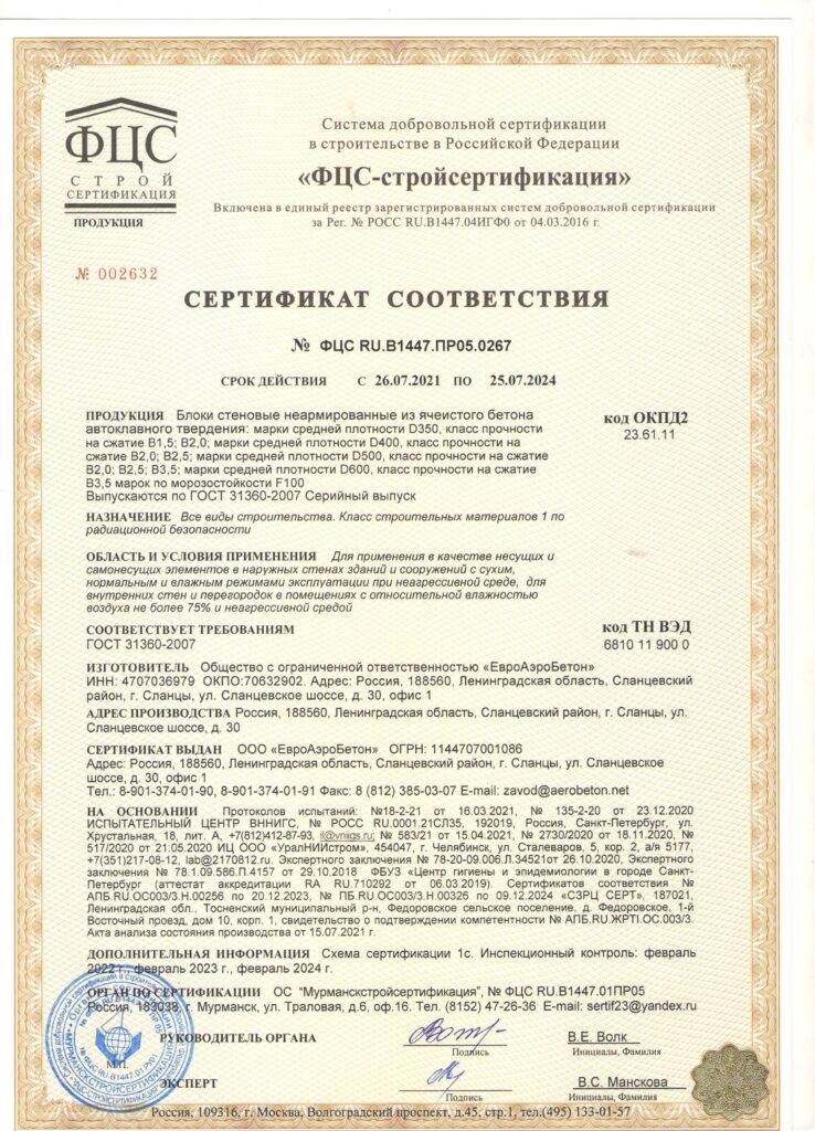 | Производитель | ЕАБ (ЕвроАэроБетон) |